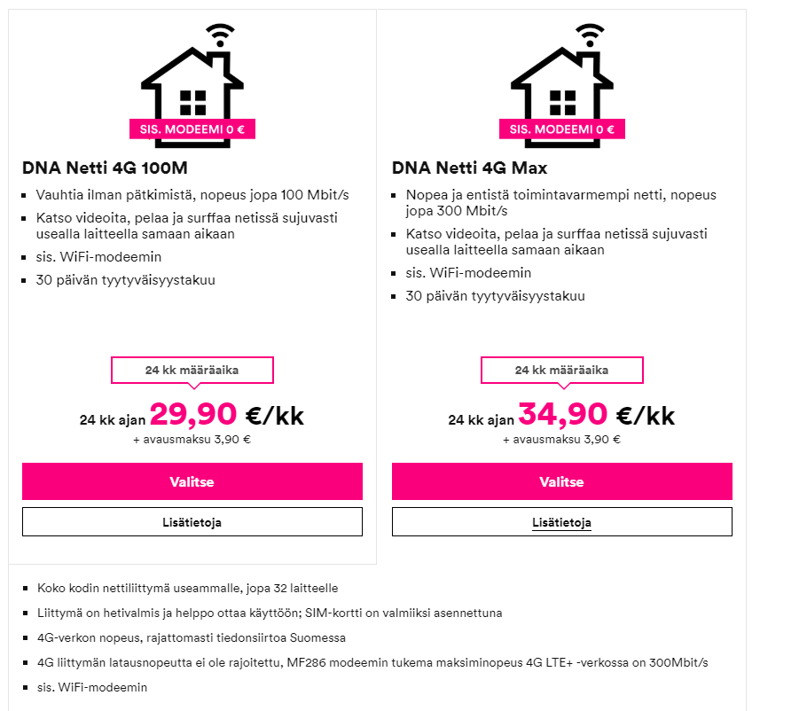 Artikkelia on päivitetty 19.5.2018: Lisättynä Telian uudet liittymät