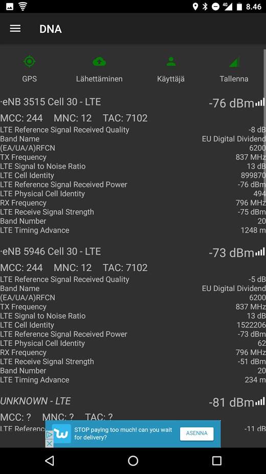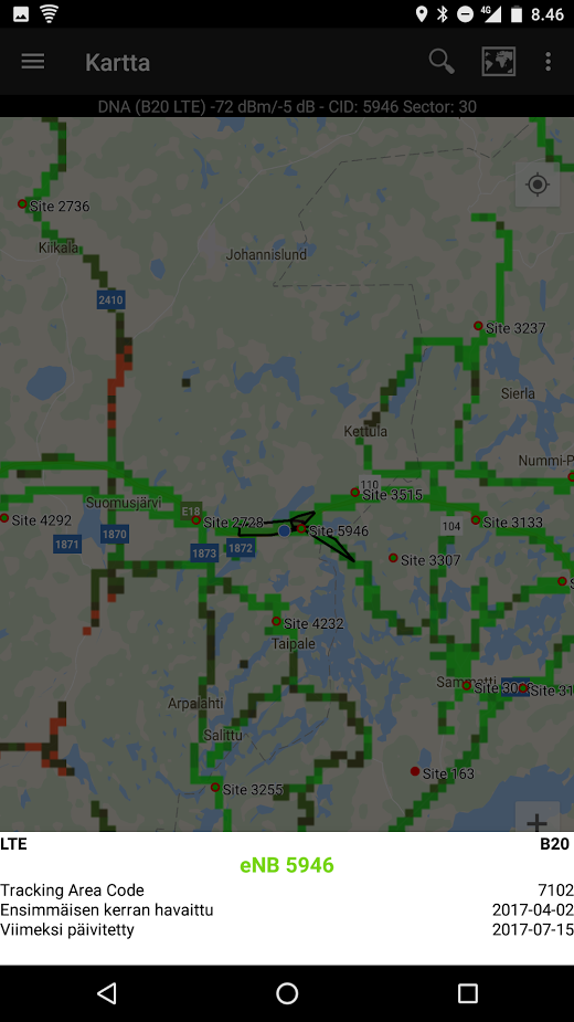 Testatut puhelimet löytyvät CellMapperin sivuilta. Suosittelen puhelimia jotka tukevat Android 4.2+ ja toimivat Android 7 tai uudemmalla käyttöjärjestelmällä.
