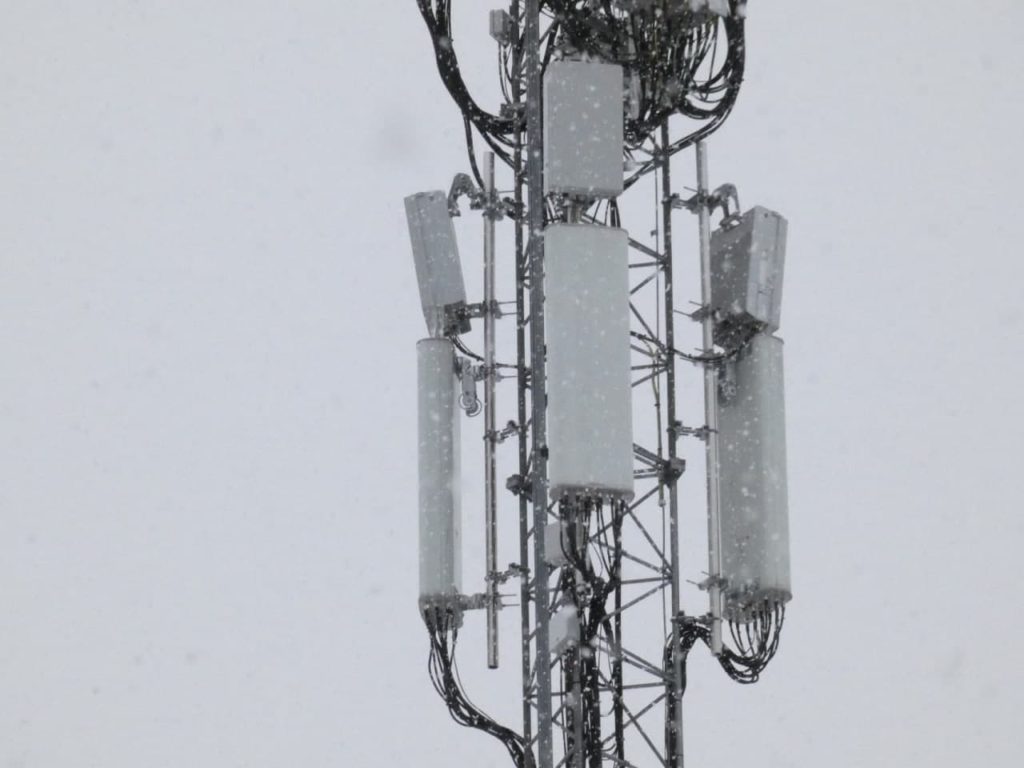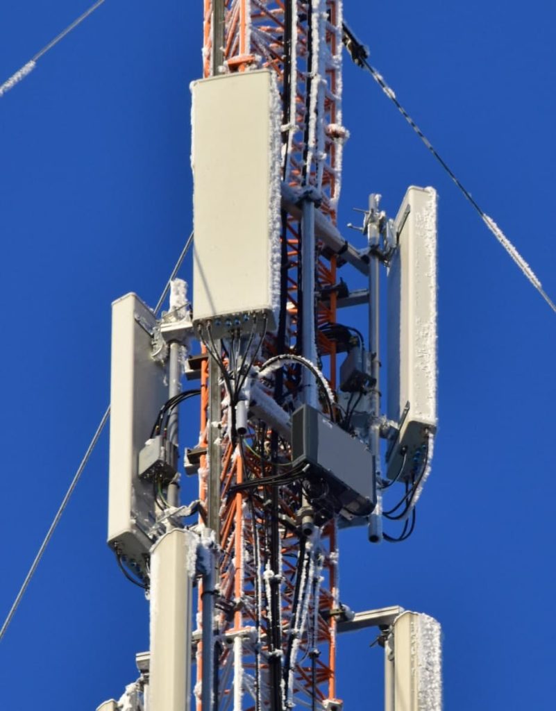 Vierailimme lopuksi Hartolan luoteispuolella Korkeaharjuntien varrella sijaitsevalla tukiasemalla, jossa Cellmapperin mukaan on saatavissa 4G:n osalta B20+B3+B1 (800/1800/2100 MHz) taajuudet. Osin kirpeän pakkassään ansiosta masto olikin saanut komean lumikuorrutteen. Elisan antennit ovat mastossa ylimpänä. Myös tässä tukiasemassa Elisalla on käytössä 700 MHz 5G.