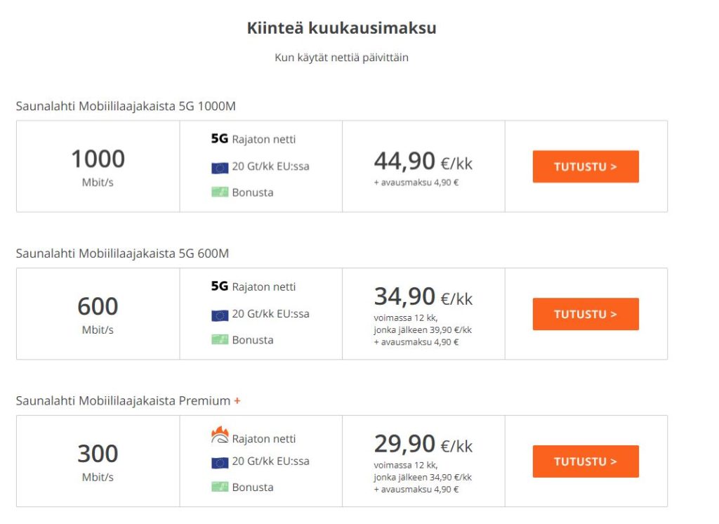 Jotta 5G-verkkoa voidaan käyttää, tarvitaan sihen sopiva päätelaite ja liittymän. Elisa aloitti Huawei 5G CPE-Pro-laitteen ennakkomyynnin 899€ hintaan. Tässä 5G-laitteessa ei näyttäisi kuvien perusteella olevan ulkoista antennipaikkaa, joten suositus on asentaa päätelaite lähelle ikkunaa. En suosittele tätä 5G-laitetta mikäli käyttäpaikka on 5G-verkon reuna-alueilla tai laite käyttää 4G-verkkoa. Laitteen toimitukset alkavat kesällä, joten on odotettavissa nopeustestituloksia kesän aikana.