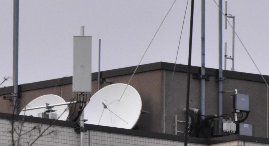 Rakennuksen katolla kuvassa oikealla Nokia Flexiradiot ja vasemmalla yksittäinen Airscale-radio. Tukiasemalla on TDD-LTE B38-taajuuden lisäksi GSM/UMTS 900 MHz ja FDD-LTE 800, 1800, 2100 ja 2600 MHz -taajuudet. Myös 5G 3.5GHz NR-peitto Elisan kuuluvuuskartan mukaan löytyy, johon tukiasemalta löytyvä rauta myös kykenee.