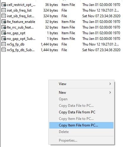 In this folder, search for and backup lte_feature_disable and/or lte_feature_disable_Subscription01 to your computer and afterwards delete them from your phone EFS filesystem. If these files do not exist, find lte_feature_enable and/or lte_feature_enable_Subscription01 and copy these (or one if only one exists) files to your computer. Modify lte_feature_enable(_Subscription01) files as needed.