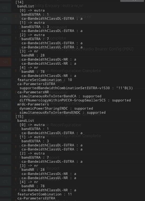 Reboot your phone and test your device on 5G tower request multiple 5G bands in UE Capability Enquiry (rat type NR)