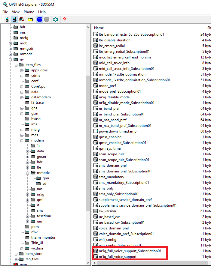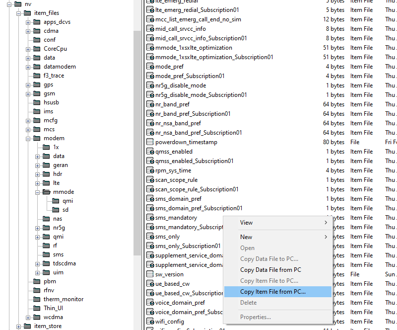 Then open EFS Explorer on your computer and navigate to /nv/item_files/modem/mmode.