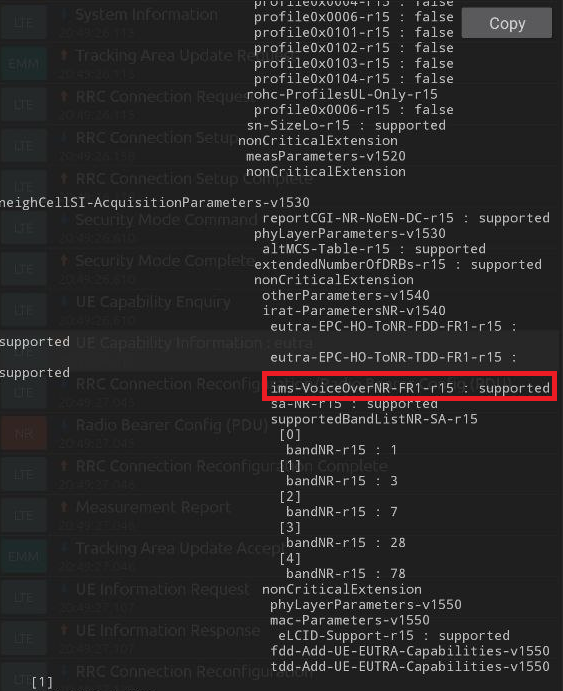 After copied, reboot your phone. You can check VoNR support in UE Capability Information eutra and nr message. To see VoNR support you must have SA enabled on your phone. Here instruction to enable 5G SA on OnePlus 8/8Pro.
