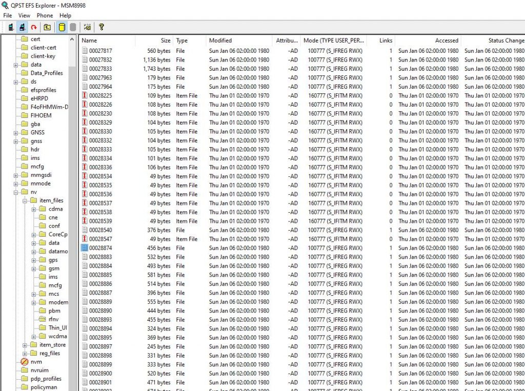 After connection open QPST EFS Explorer and go to /nv/item_files/rfnv and find file 00028874. Copy this file to your computer.