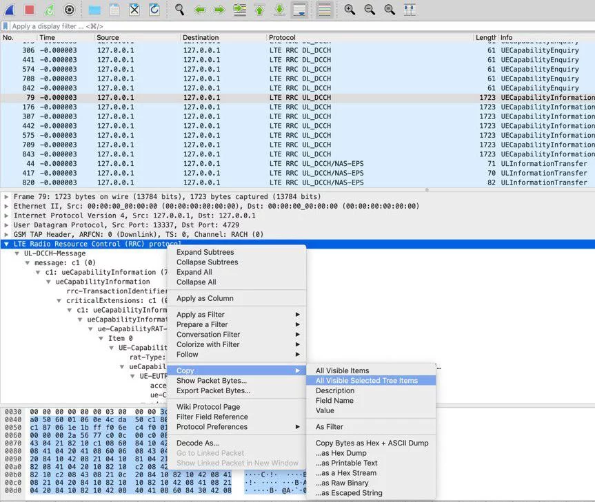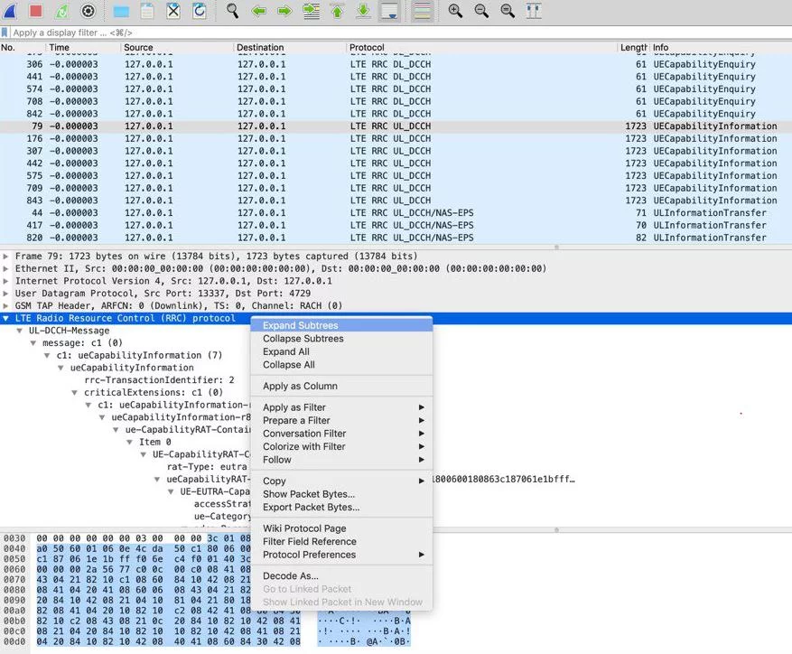 - Find UE Capability Information message. If you have 5G phone, you may see multiple UE Capability Information messages.