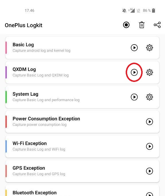 – OnePlus Android 10 and newer: Just start recording clicking next of QXDM Log recording button.