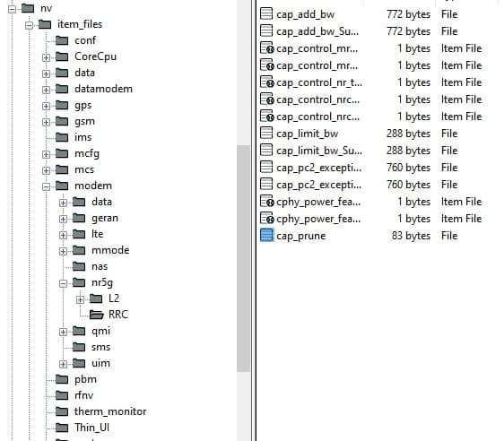 Open EFS Explorer on your Windows computer and navigate to /nv/item_files/modem/nr5g/RRC/.