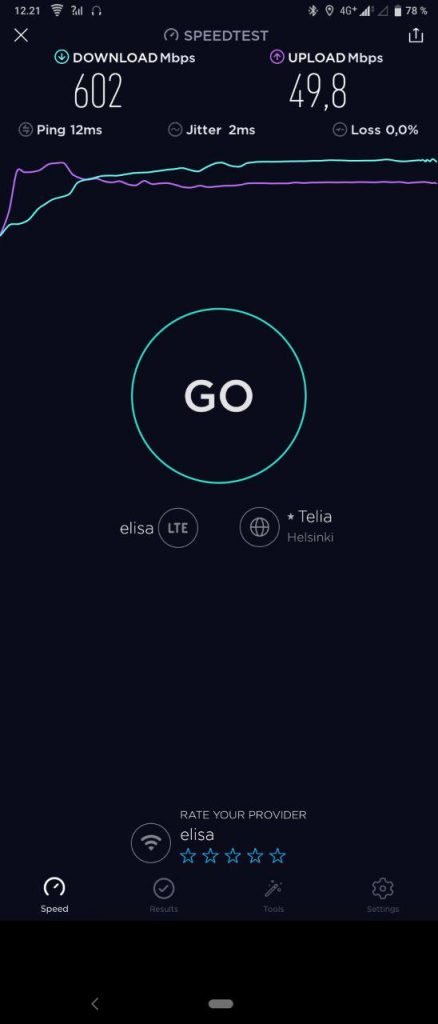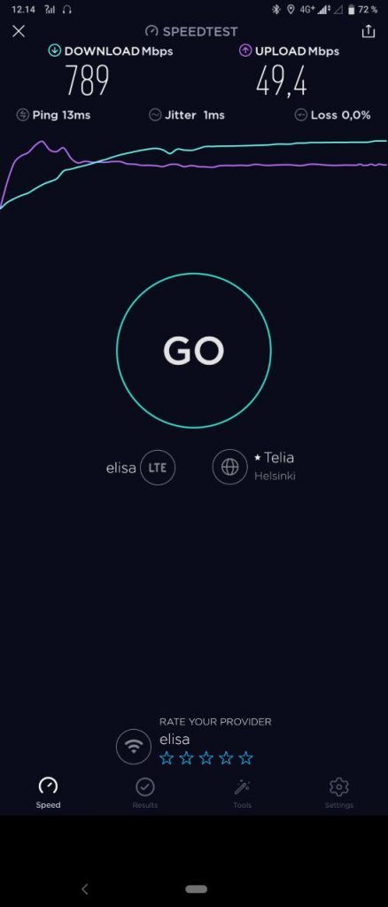 With Sony Xperia 1 mobile phone i got over 700Mbps speed in Elisa 4G-network. I tested with Elisa Saunalahti Mobile Broadband 5G 1000M -plan.
