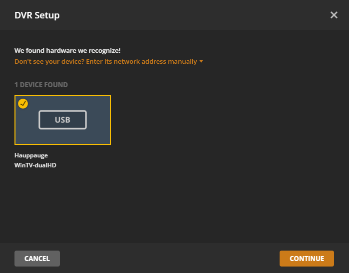 Kirjaudu Plex-palvelimelle selaimella -> Asetukset -> Live TV & DVR valikon alta ”Lisää laite”. Plexin pitäisi nyt tunnistaa USB-laitteesi suoraan automaattisesti.