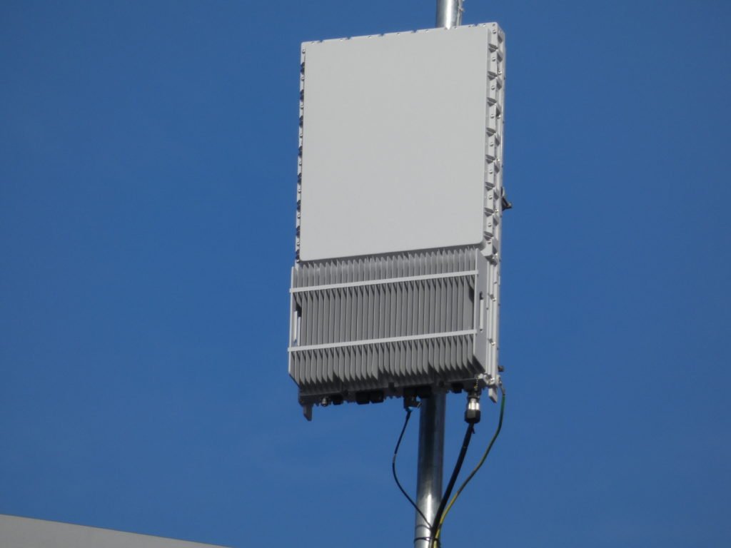 Tämä on tyypillinen 5G-tukiasema, jota tullaan näkemään rakennusten katoilla, seinissä ja mastoissa. Aluksi näitä asennetaan 4G-tukiasemiin ja myöhemmin Standalone-asennuksina, luultavasti vasta 2025 jälkeen kun kapasiteettia tarvitaan lisää.