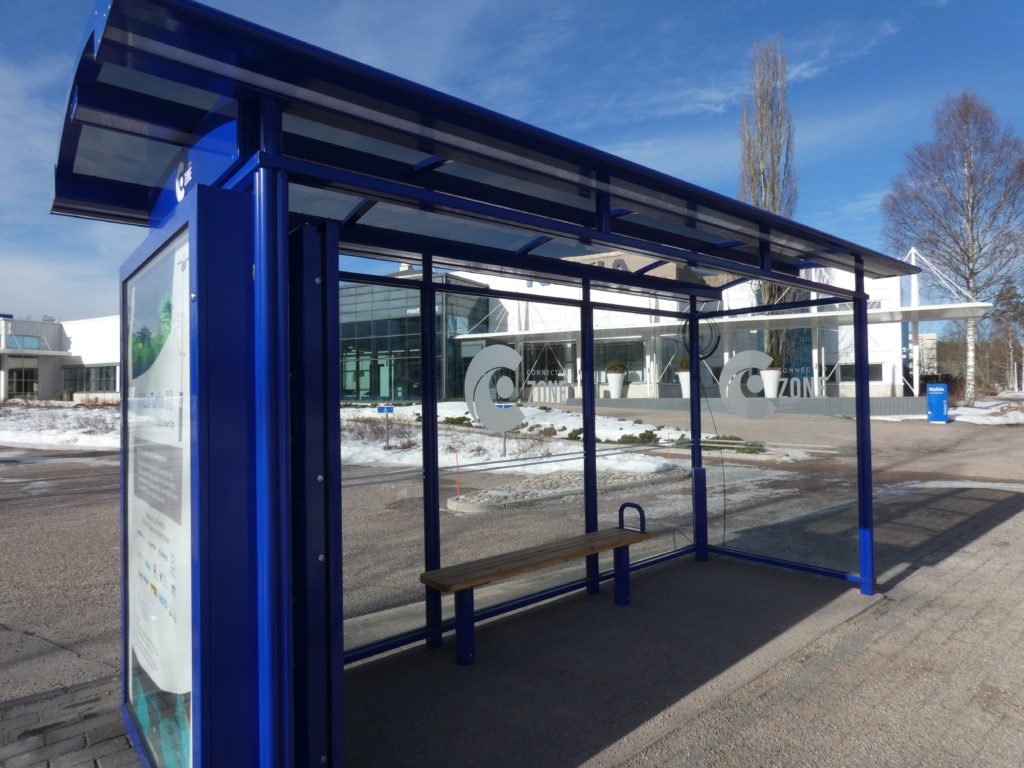 Älybussipysäkin sisäpuolella on näyttö, jossa sitten voidaan aikatauluja, säätietoja, liikennetiedotteita. Turva-alueen tarkoituksena on myös tarjota neuvontaa ja apua esimerkiksi uhkaavissa tilanteissa.