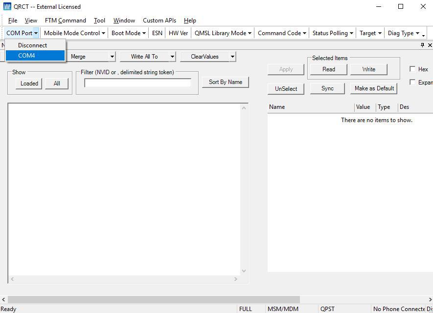 Sitten avaa QRCT-sovellus työasemaltasi. Valitse COM Port -> ja COM4 esimerkiksi (portin numero).