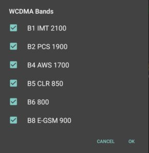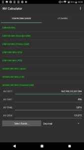 Voit ladata puhelimellesi NV Calculator (Non-Volatile) -sovelluksen Google Play-kaupasta. Valitse Band Selection ja valitse 2G ja 3G taajuudet jotka haluat ottaa käyttöön. Huomaathan, ettet voi ottaa kaikkia taajuuksia käyttöön samaanaikaisesti. Valitsimme seuraavat taajuudet: