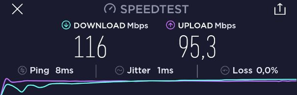 Testasimme Huawei B818:n LAN-portin nopeuden sekä 2.4 GHz ja 5 GHz Wifi-yhteyden nopeuden. WAN-porttiin oli kyketty Elisan 1000M/100M valokuituyhteys. Lisäksi testasimme 4G-yhteyden toimivuuden Oneplus 8 Prolla kytkettynä 5 GHz Wifiin.