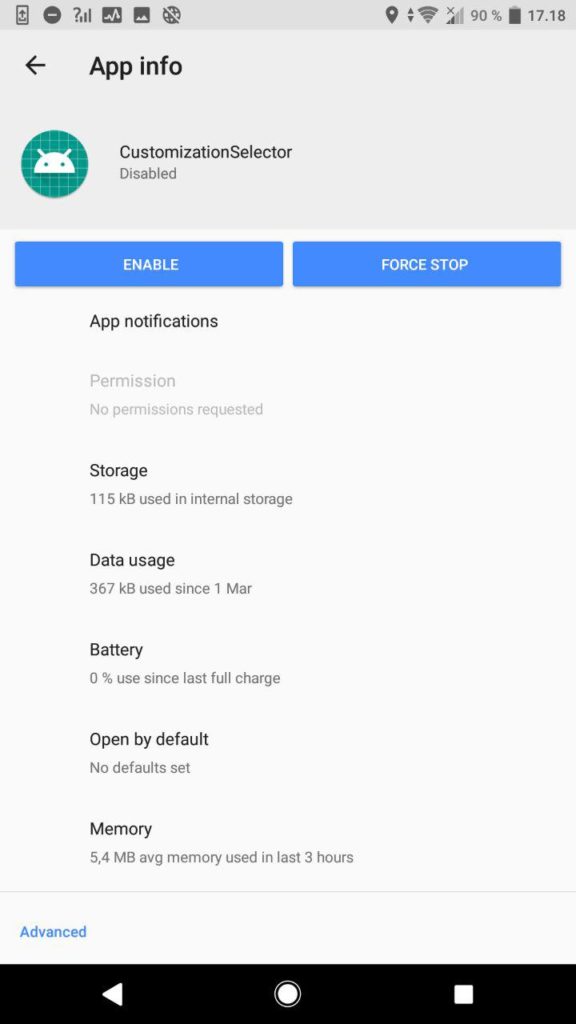 Kun puhelin on hakenut kaikki asetukset ja käynnistynyt uudelleen, niin sinun tulee poistaa CustomizationSelector-sovellus pois käytöstä Android Asetuksista -> Sovellukset -> Näytä Järjestelmä (löytyy lisävalikosta, niin näet myös järjestelmäsovellukset). Tämä sovellus optimoi jokaisen SIM-kortin yhteydessä asetukset ja lataa uusimman konfiguraation. Kun tämä on pois käytöstä, niin nyt sinulla on puhelimella aina DNA:n konfiguraatio asetukset ja myös samalla VoLTE/VoWIFI-asetukset.