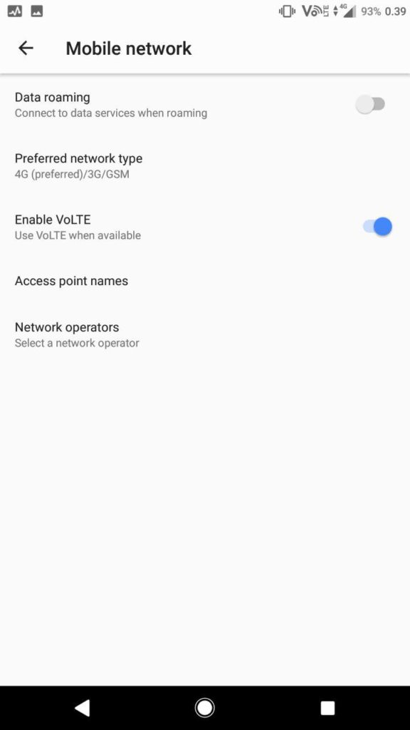 VoLTE:n saat otettua Android-asetuksissa käyttöön: Verkko & Internet -> Mobiiliverkot -> Ota VoLTE käyttöön